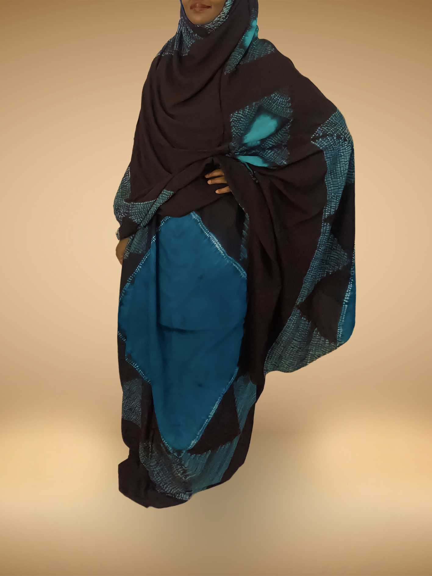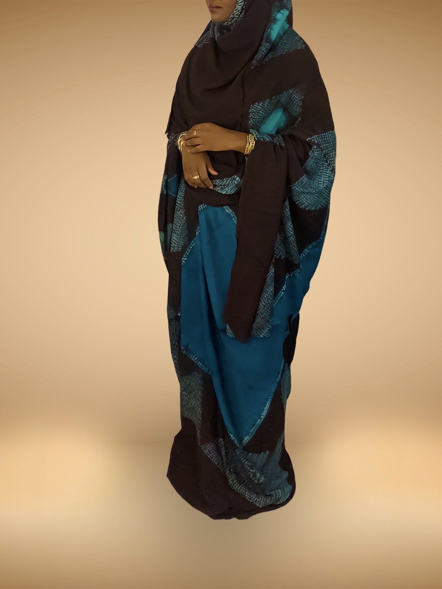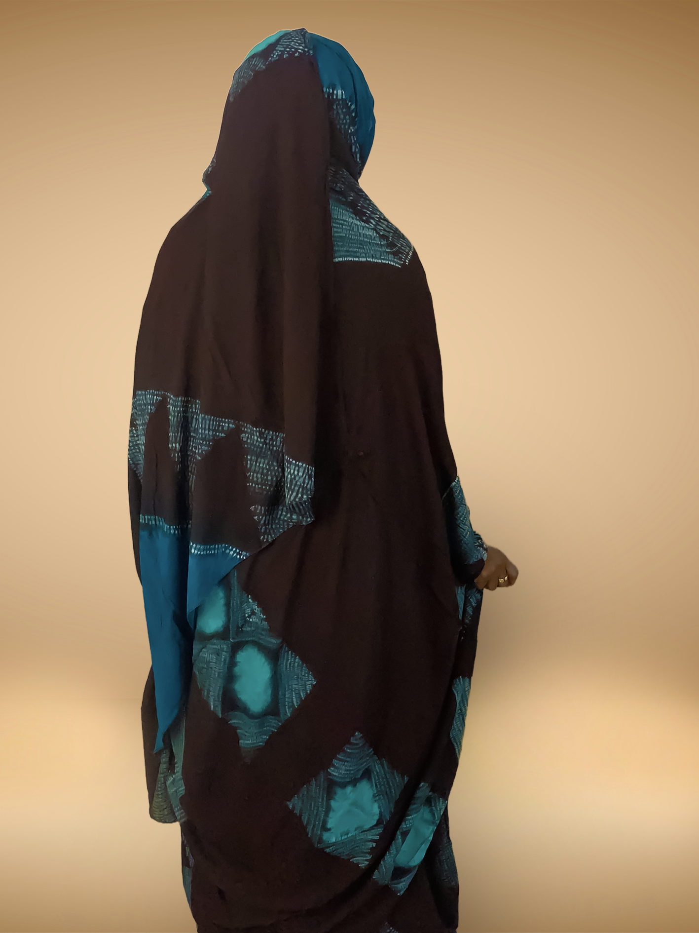Melhfa cousu au niveau des épaule convient à une personne mesurant entre 1m65 et 1m75