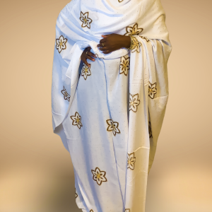 Melhfa cousu au niveau des épaule convient à une personne mesurant entre 1m65 et 1m75